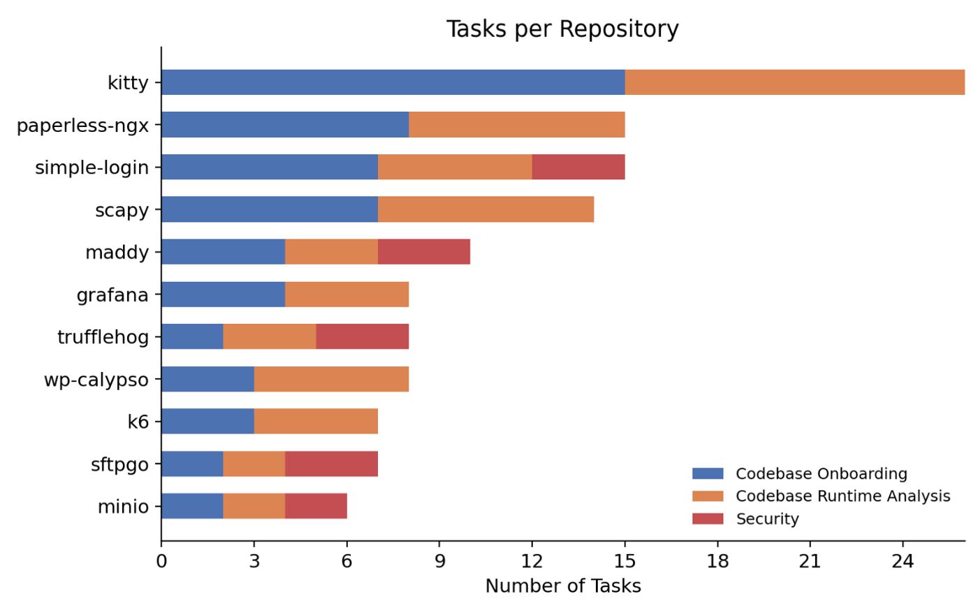 Codebase QnA consists of 124 tasks that targets the upstream capability of Software Engineering - deep code comprehension that precedes any code change.