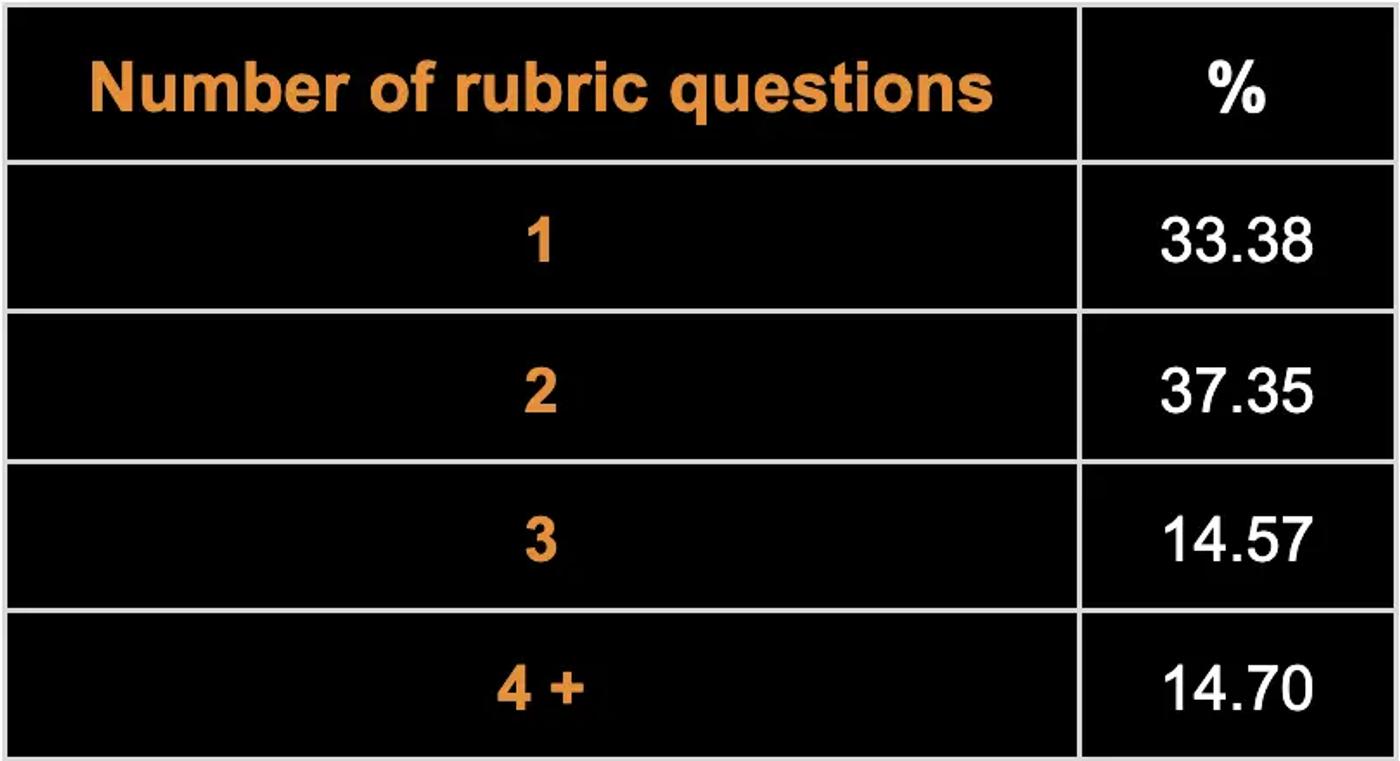 Table 1. The number of conditions that need to be satisfied to assess the correctness of a response might vary. The table reports the distribution of the number of rubric questions per task.